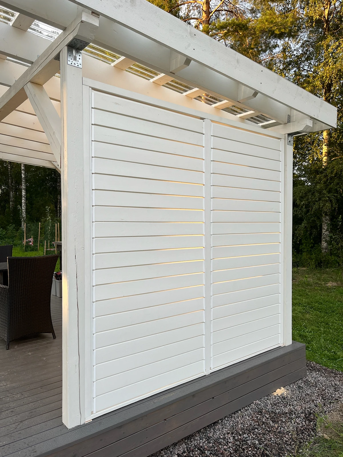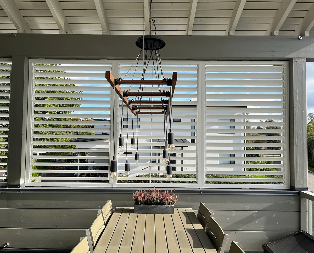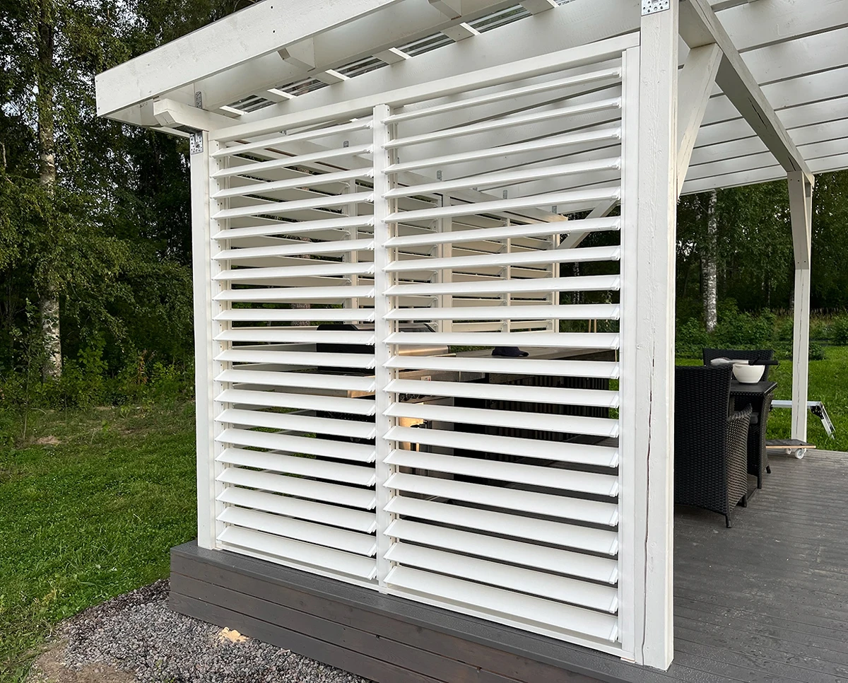 Vaajakoskella käsintehdyt terassikaihtimet mittojesi mukaan. Terassikaihtimet ovat jotain mitä Suomessa ei ole juuri aiemmin nähty. Ne tarjoavat suojaa tuulelta ja auringolta sekä tuovat moneen paikkaan kaivattua yksityisyyttä esimerkiksi terasseille. Kääntyvät terassikaihtimet ovat loistava vaihtoehto tavalliselle säleikölle. Saat avattua ja suljettua ne tilanteen mukaan. Paneelit ovat kuusta ja saatavilla myös lämpökäsiteltynä. Väri toiveidesi mukaan.